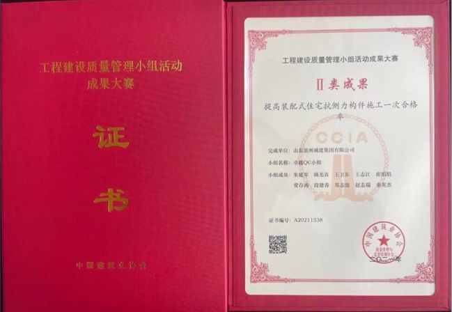 來自機電公司的卓越QC小組完成的《提高裝配式住宅抗側力構件施工一次合格率》成果,在第一期工程建設質量管理小組活動成果大賽中榮獲Ⅱ類成果。來自一公司的土行者QC小組完成的《提高現(xiàn)澆混凝土網箱結構樓蓋平整度合格率》成果,在第三期工程建設質量管理小組成果大賽中榮獲Ⅱ類成果。