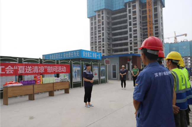 為切實做好夏季防暑降溫工作, 保護一線職工的健康權益,推動改善生產生活條件,有效防控高溫中暑和各類事故發生,6月29日-6月30日,城建集團工會開展了2019“夏送清涼”慰問活動。工會主席付建玲帶領黨辦、工會等相關部門工作人員組成慰問組,走訪慰問了高溫下仍然堅守在生產一線的項目部廣大職工,為他們送去了茶葉、綠豆、藿香正氣水、風油精、毛巾等防暑降溫慰問品。